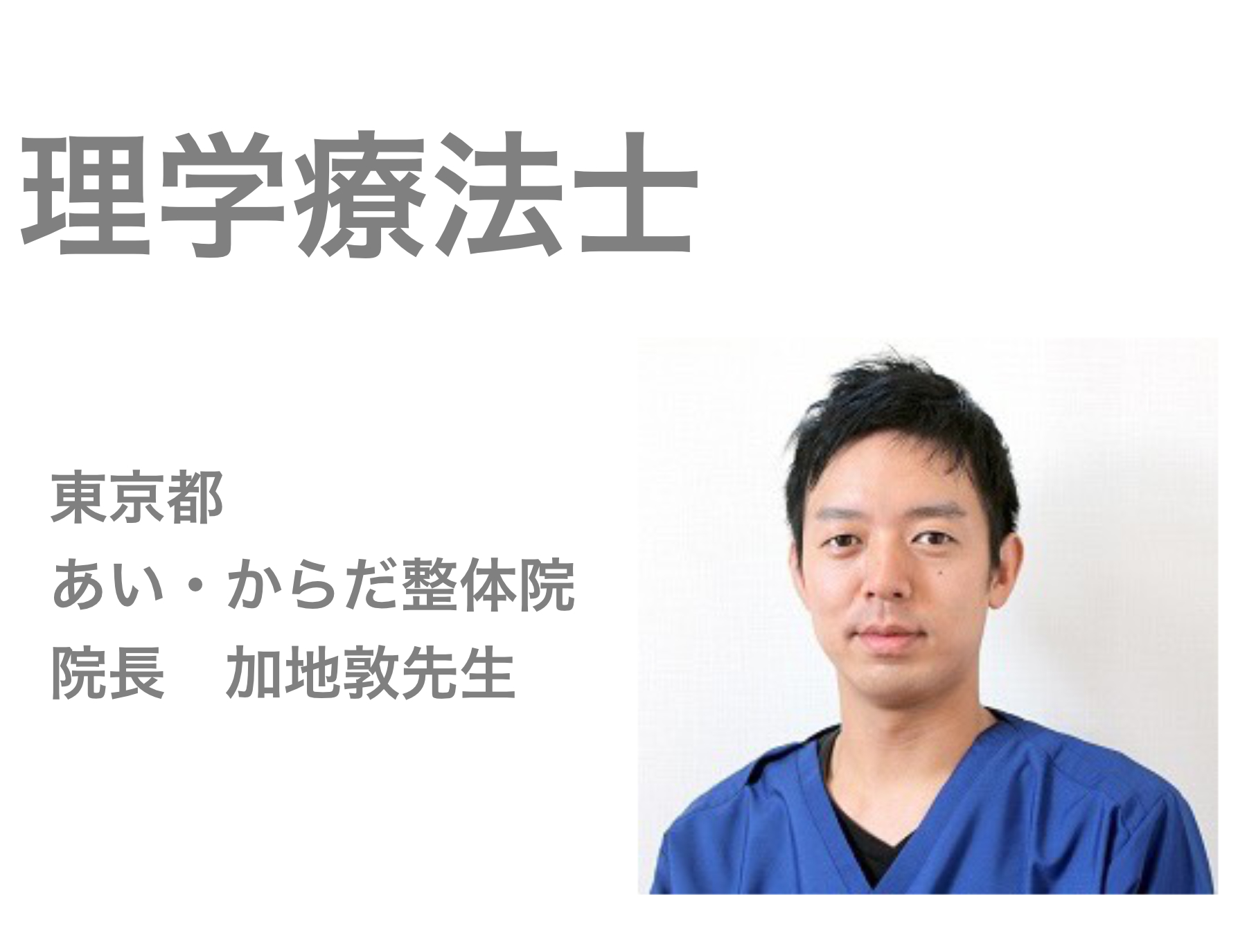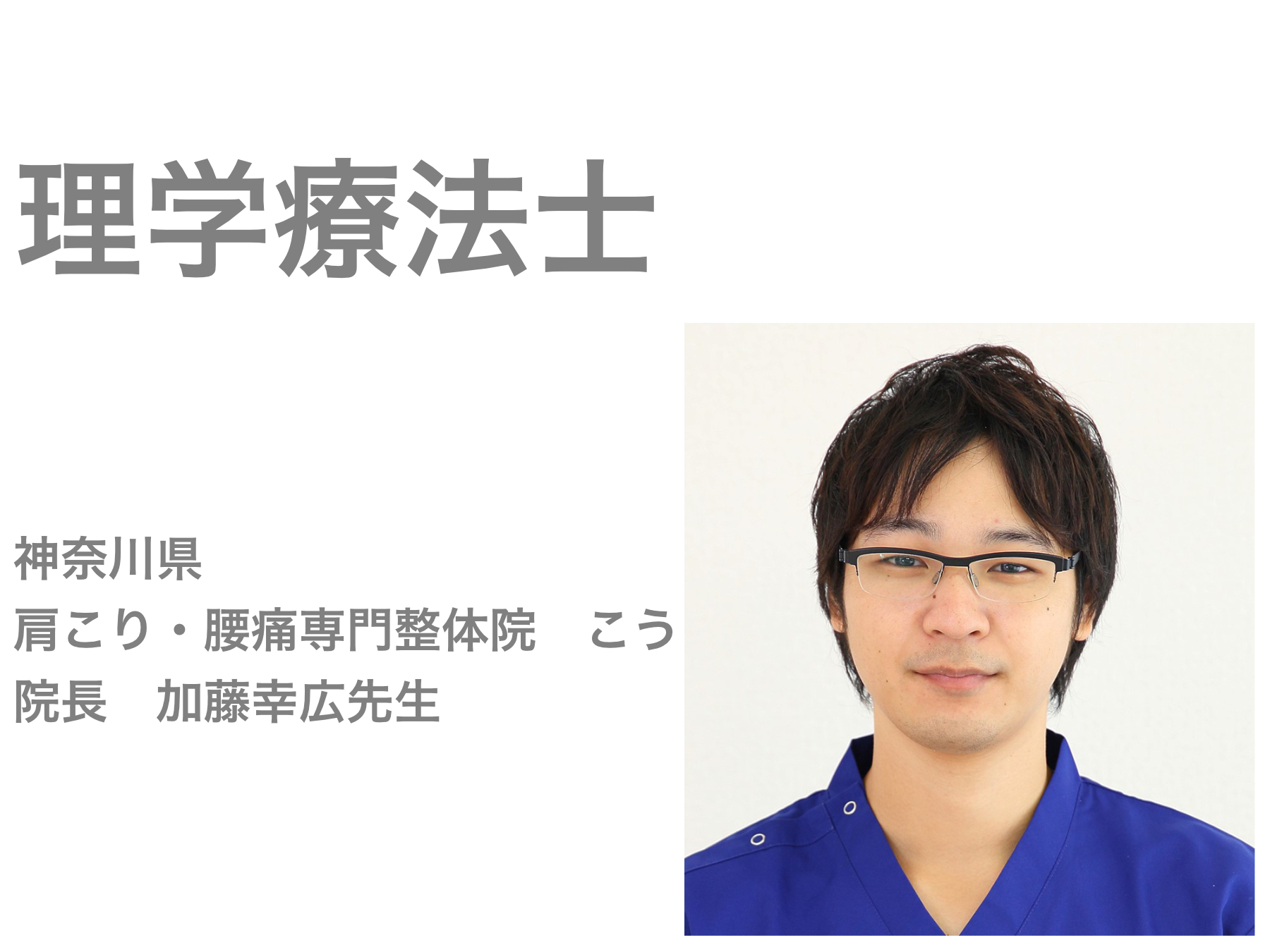 私自身理学療法士として活動しておりますが、松山先生とは技術セミナーで知り合いました。先生は勉強熱心で知識、技術が豊富です。そして、患者さんのために、全力で向き合ってくれます。もし、どこに行っても良くならないと諦めているのでしたら、一度松山先生の元を訪ねてみてください。