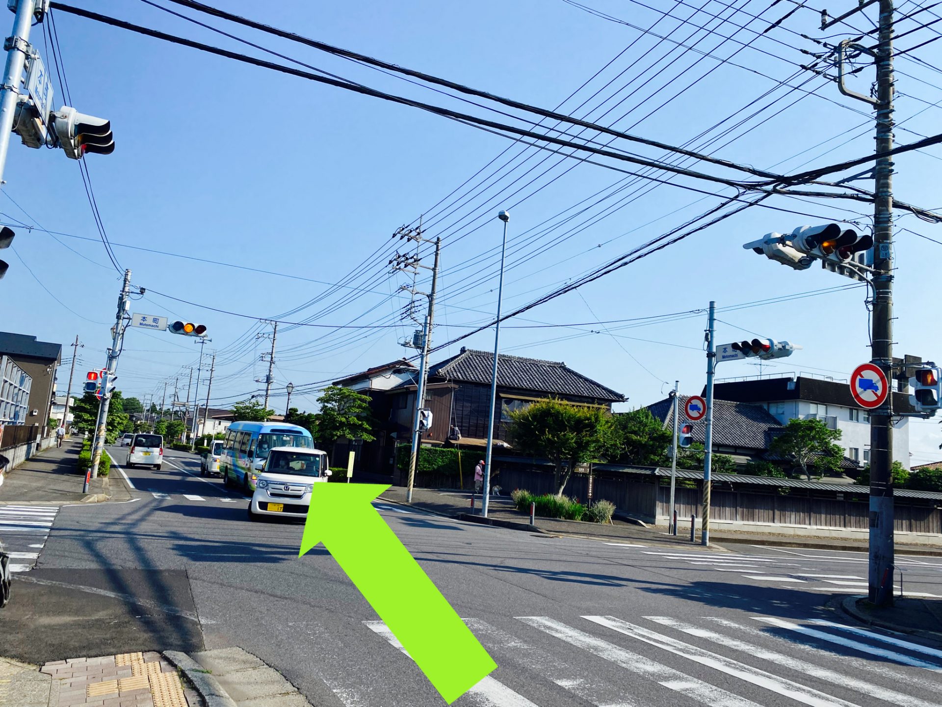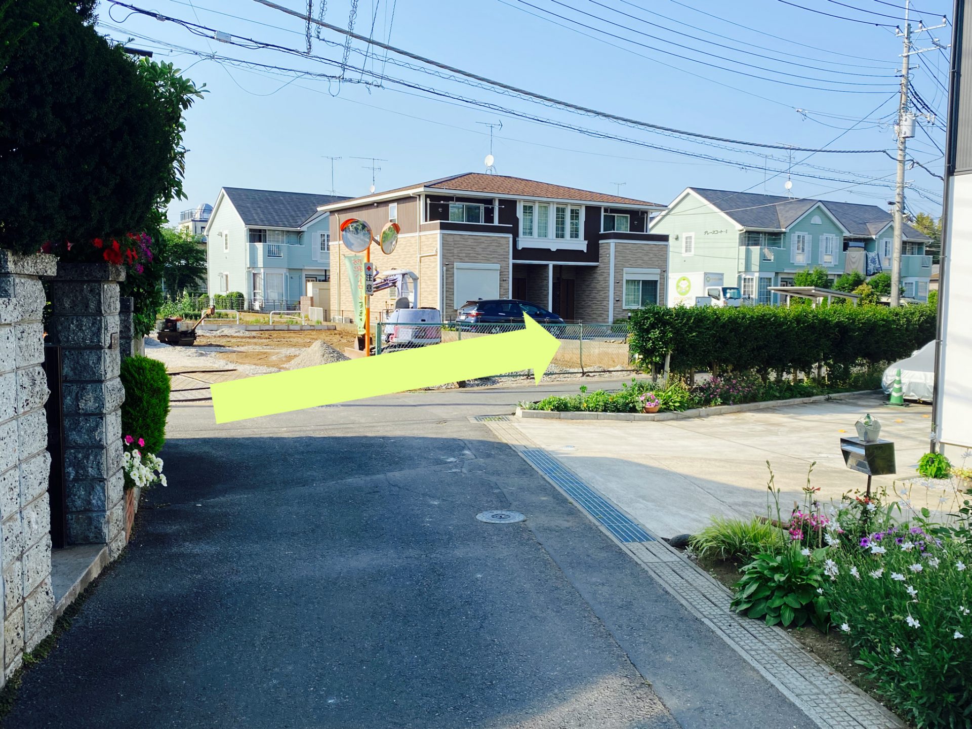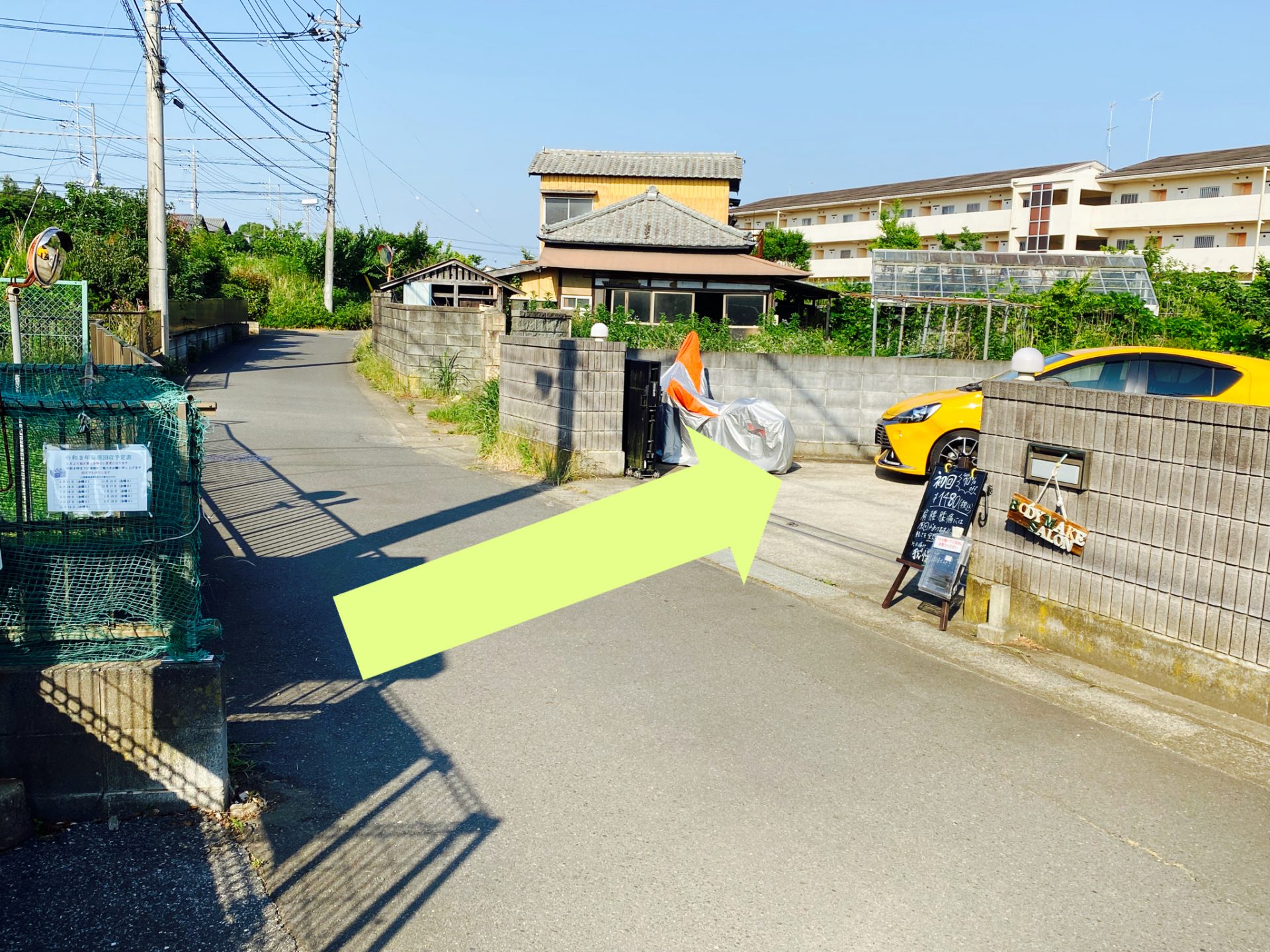 ⑤突き当たりにアパートが見えますので右に曲がります。